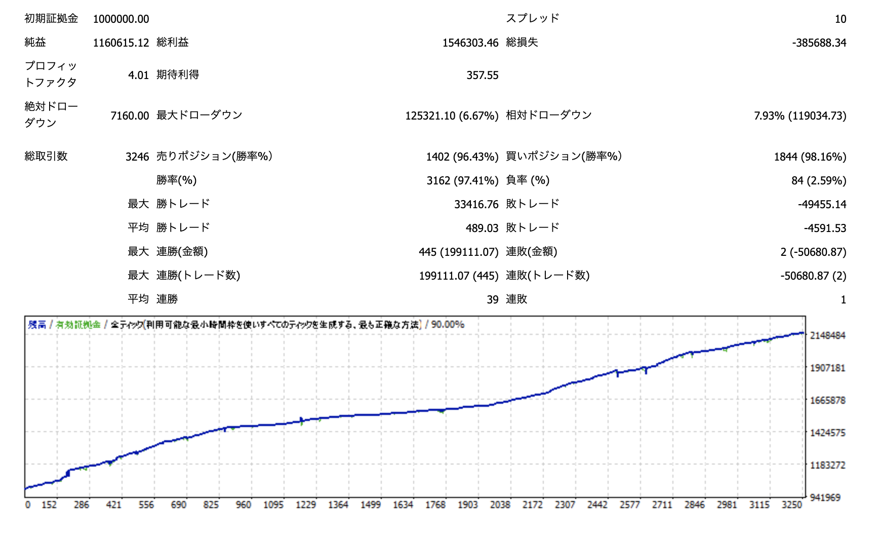 Increasing the lot size forcibly due to a high winning rate can, in rare instances, depending on the EA, lead to substantial Pips loss when a loss occurs. It is crucial to verify the SL Pips and the number of positions held before operating with an appropriate lot.