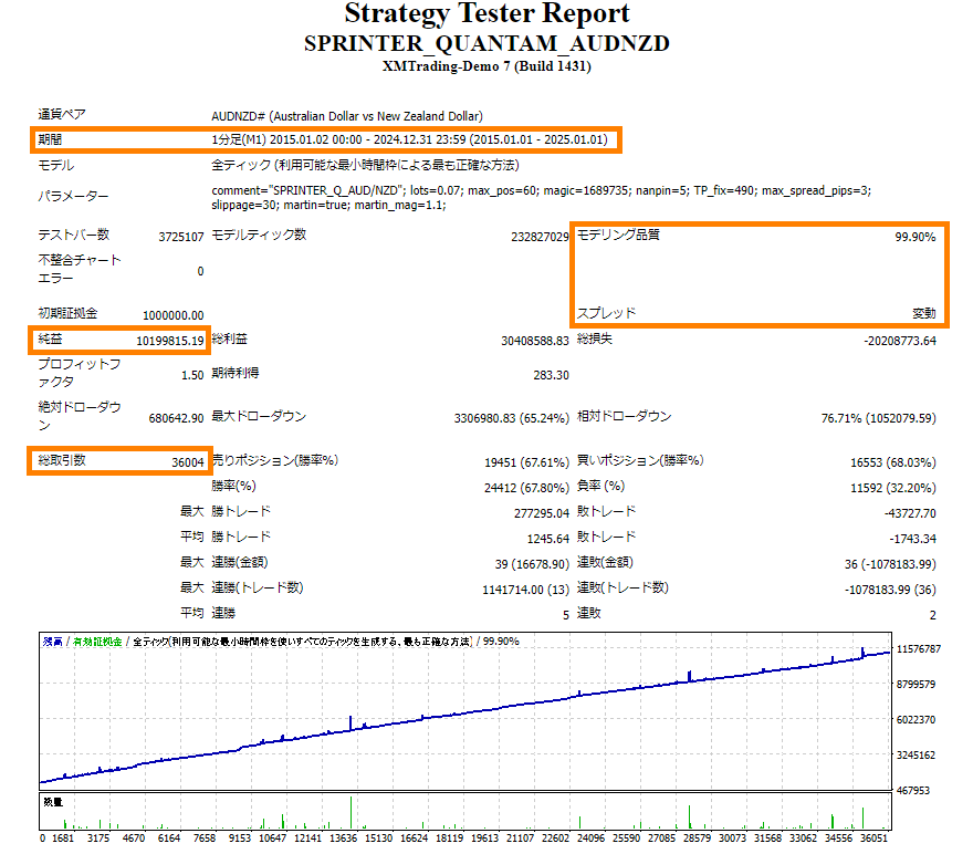長期間のバックテスト、高精度なデータによる再現性、十分な取引回数の3つの要素を兼ね備えた本EAは、安定した収益を狙うトレーダーにとって強力な武器となるでしょう。