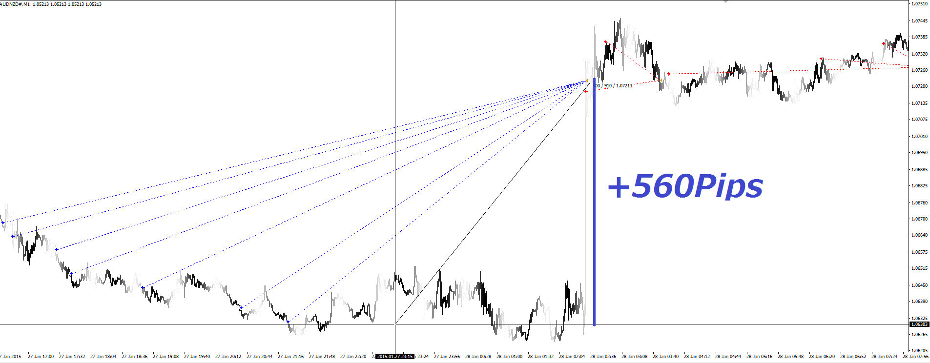 対象通貨ペアはAUD/NZD。この通貨ペアは急激な値動きが少なく、比較的安定した推移を見せるため、ナンピン戦略との相性が抜群です。市場の特性を活かした戦略で、堅実に利益を狙います。