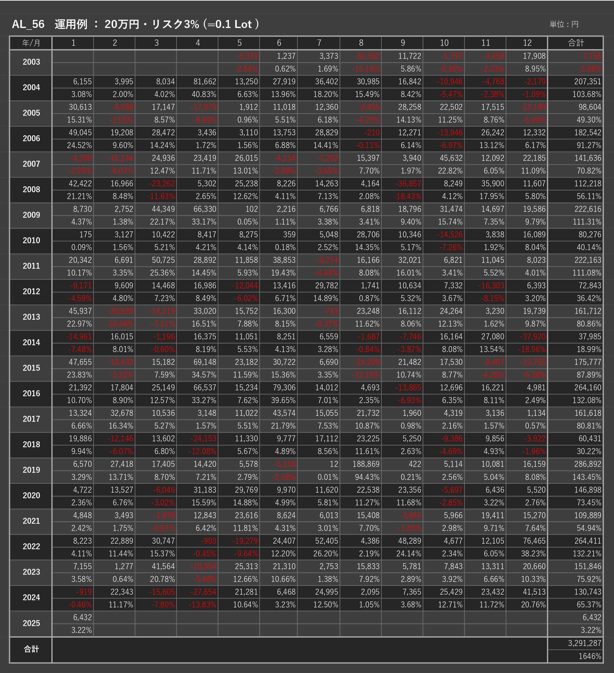 Increasing the lot size forcibly due to a high winning rate can, in rare instances, depending on the EA, lead to substantial Pips loss when a loss occurs. It is crucial to verify the SL Pips and the number of positions held before operating with an appropriate lot.