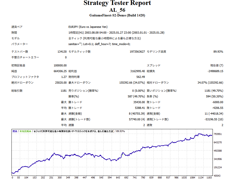 ※バックテストは1通貨ずつ行われる都合上、USDJPYの結果と別にEURJPYのスコアを以下に示します。