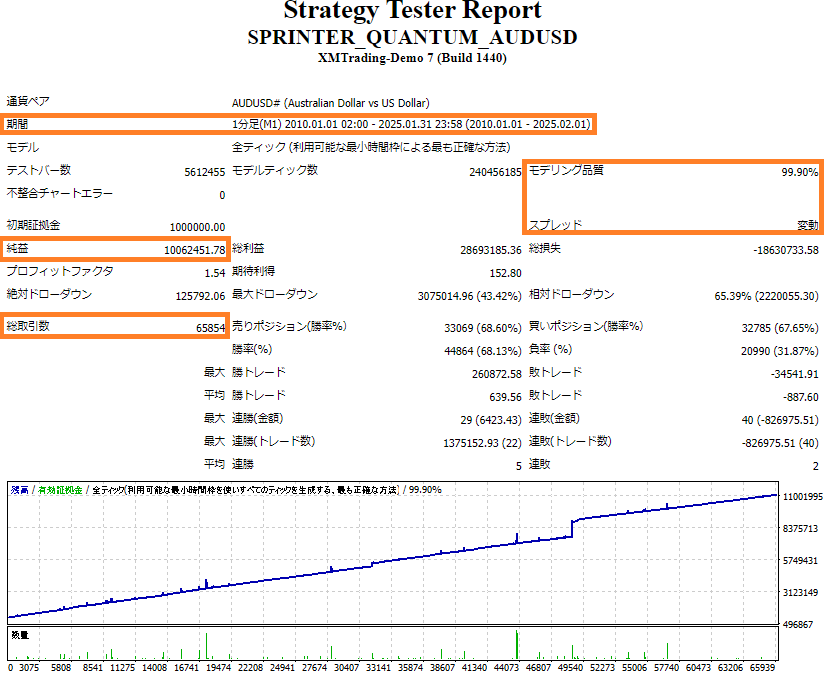 長期間のバックテスト、高精度なデータによる再現性、十分な取引回数の3つの要素を兼ね備えた本EAは、安定した収益を狙うトレーダーにとって強力な武器となるでしょう。