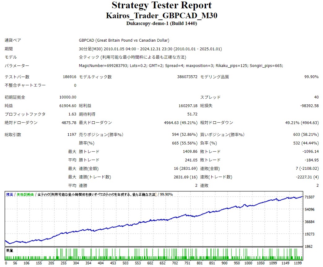 Kairos Trader GBPCAD M30は、GBPCAD専用のM30(30分足)ナンピン型EAです。
