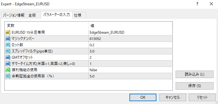 初期値は3pipsですが、スプレッドの広い口座では動作しないため、確認お願いします。
