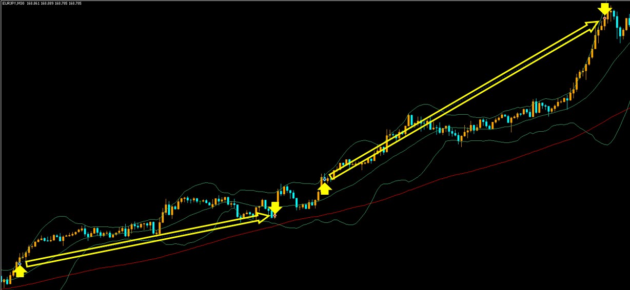 押し目をあまりつけない強いトレンドが発生した際に真価を発揮します。