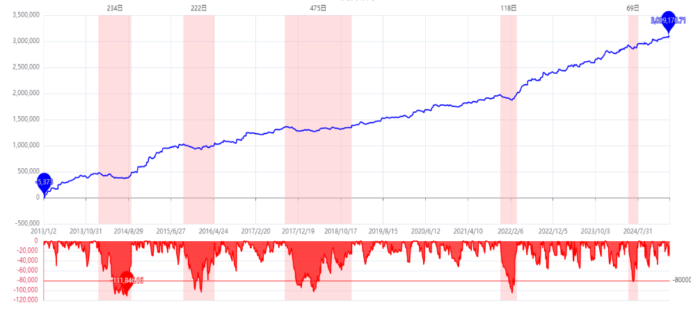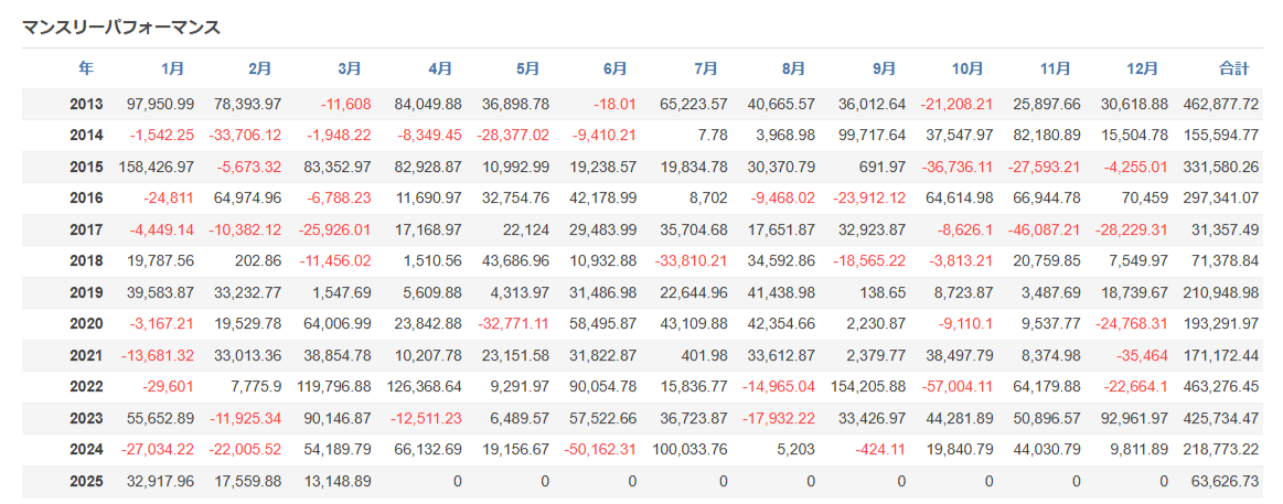 12年を超える長期の検証では、年次負けなしという好成績を記録しました。