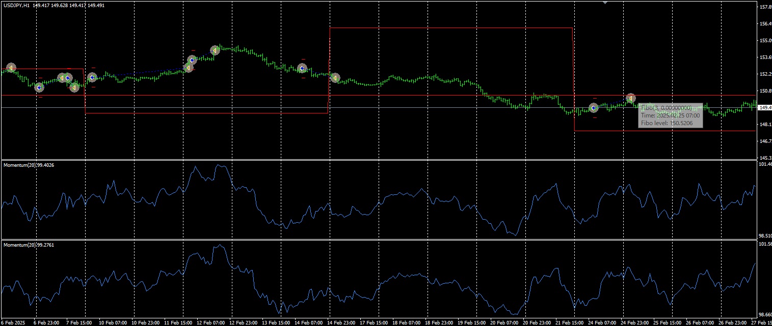 ■ 使用インジケータ ・Momentum(モメンタム) ・Fibonacci(前月/前週) ・CloseDaily(日足終値)