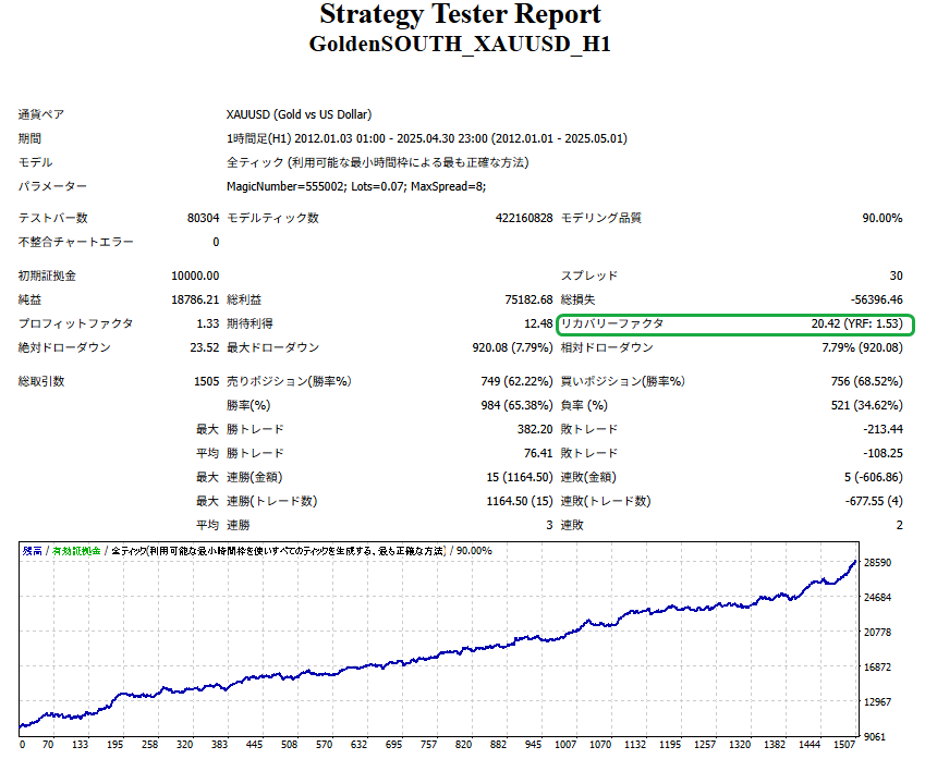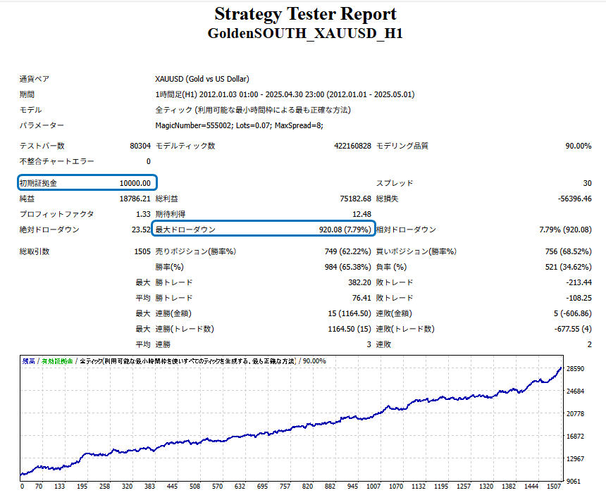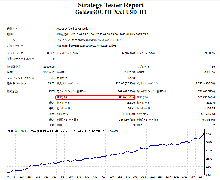 ※バックテストは固定スプレッド3.0pipsで行っております。それ以上のスプレッドでは著しく成績が悪くなる恐れがあります。お使いのブローカーのスプレッドをご確認ください。