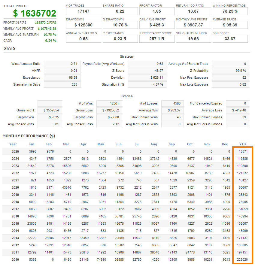 There is an absence of self-serving rule modifications, a common human tendency, such as increasing the lot size after consecutive losses in discretionary trading or, conversely, hastily securing profits with minimal gains.