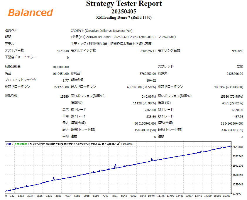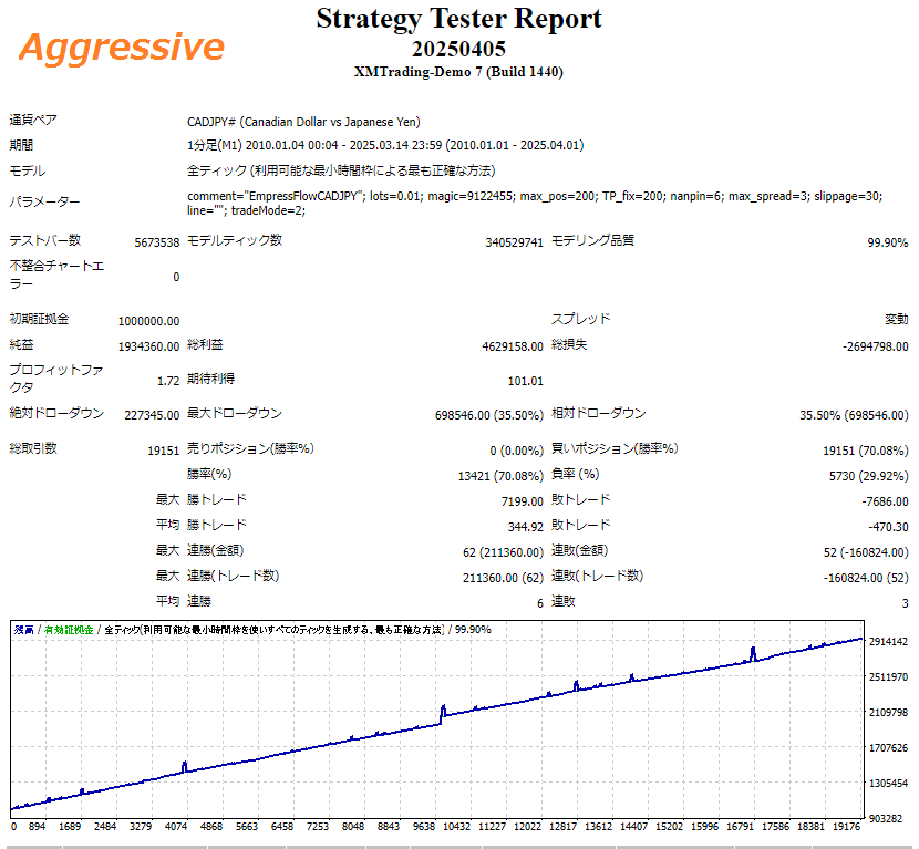 CADJPYの値動きに特化し、為替差益とスワップポイントの二重取りを狙ったEAです。