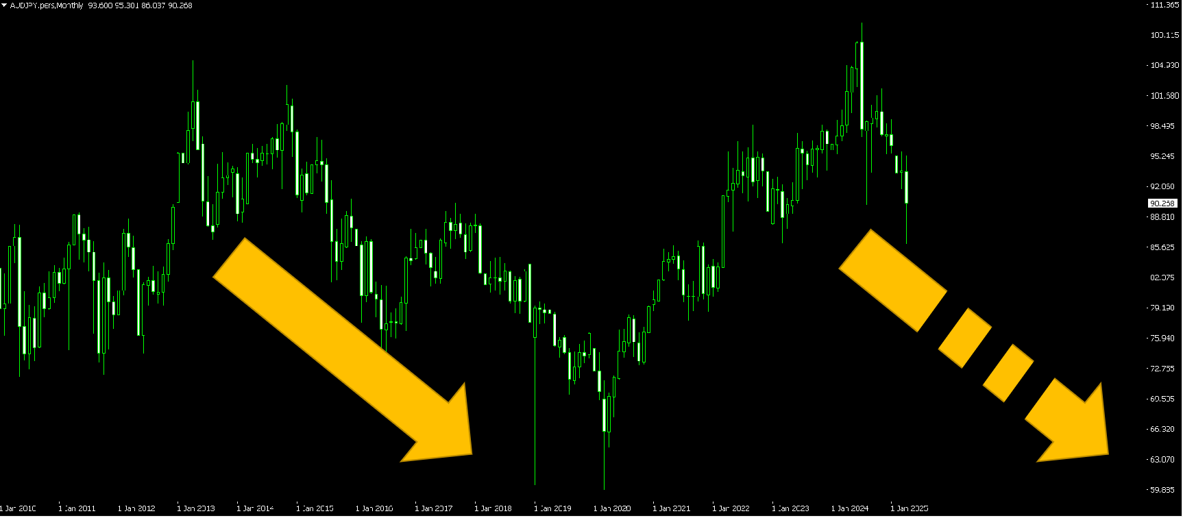 → 少なくとも「AUD/JPYが10円〜20円単位で爆上げする可能性は極めて低い」