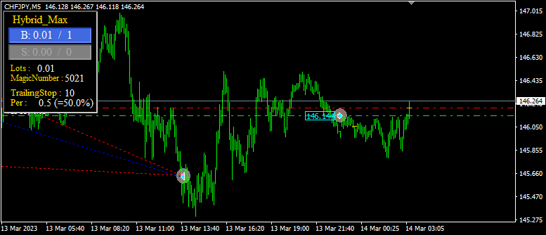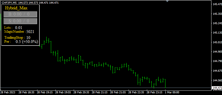 If ‘Authentication Success’ appears in the upper left of the chart, the authentication has been successful. To operate the EA, you need to keep your PC running 24 hours. Therefore, either disable the automatic sleep function or host MT4 on a VPS and operate the EA.
