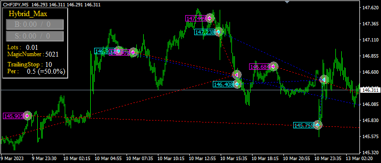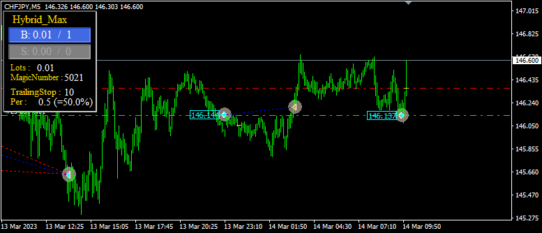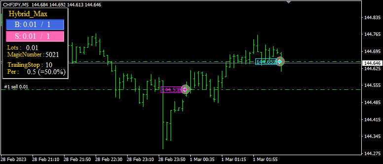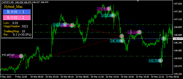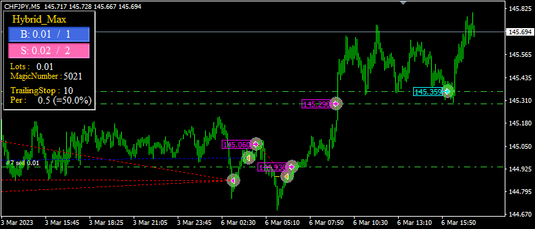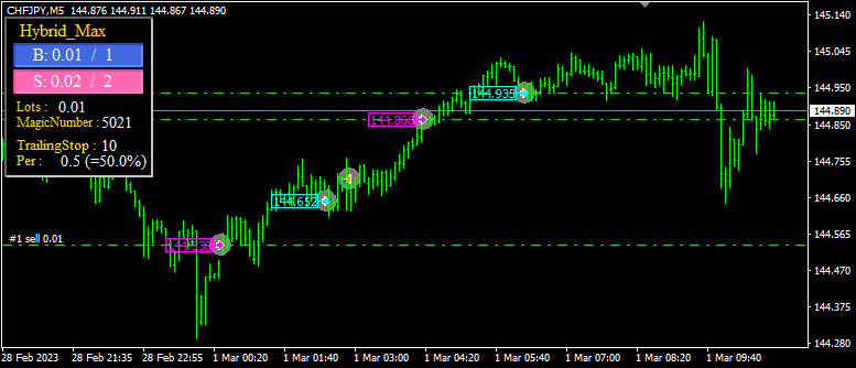 ・SL (Stop Loss): The set maximum loss pips (or specified amount, etc.) in the EA's settings