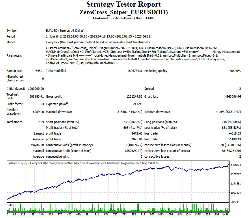 EA名称:ZeroCross_Sniper_EURUSD(H1)