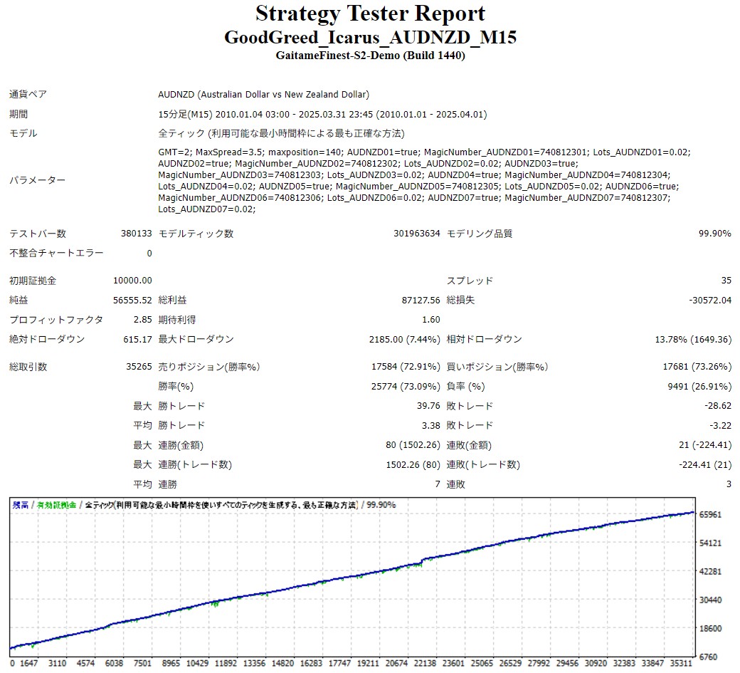 🧪 バックテスト結果から読み解く──GoodGreed_Icarus_AUDNZD_M15の「信頼性能」