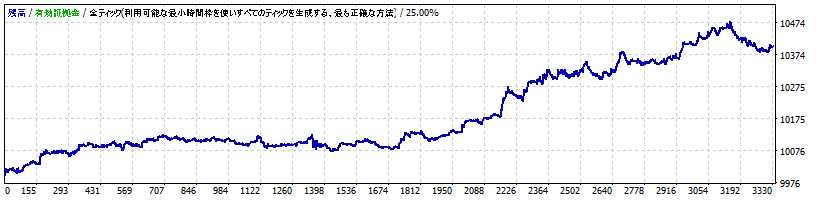 🔹 プロフィットファクター:1.15 しっかりと利益が損失を上回る構造を実現。長期的に資金が増えていくことを目指した設計です。 🔹 最大ドローダウン:たったの1.32%! 資金効率が非常に高く、リスク管理を徹底したロジック。大きな資金変動を避けたい方に最適です。 🔹 高精度な90%モデリング品質 Tickデータを用いた厳密なEvery Tickモードで検証済み。信頼性の高いバックテスト結果を実現しました。 🔹 取引回数:3442回の堅実な実績 バックテスト期間中、数千回にわたる売買を繰り返しながら、着実に資金を増やしています。 🔹 平均利益(勝ちトレード):311円 / 平均損失:186円 トレード単体で見ると勝率は高くないように見えますが、**「損小利大」**をしっかり実現しています。