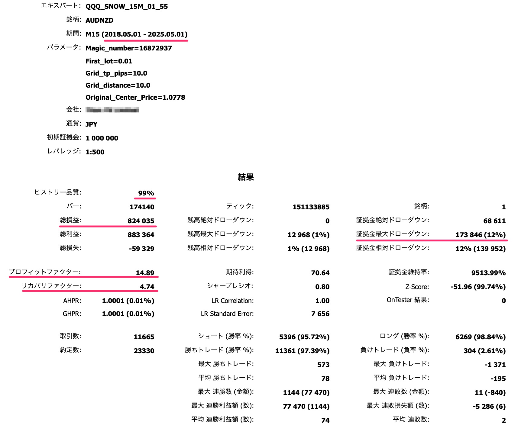 Increasing the lot size forcibly due to a high winning rate can, in rare instances, depending on the EA, lead to substantial Pips loss when a loss occurs. It is crucial to verify the SL Pips and the number of positions held before operating with an appropriate lot.