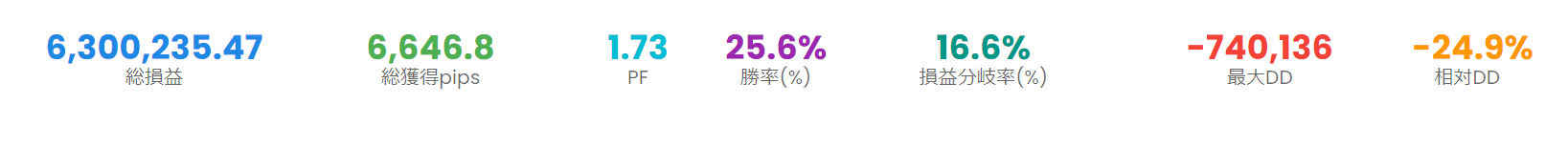データは Lots 1.0 のものですので Lots 0.1 では最大ドローダウンは 74,136 円になります。