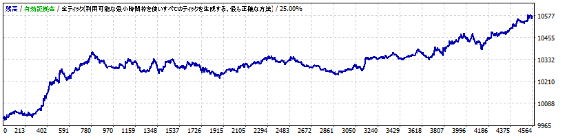 🔹 プロフィットファクター:1.12 しっかりと利益が損失を上回る構造を実現。長期的に資金が増えていくことを目指した設計です。 🔹 最大ドローダウン:たったの1.44%! 資金効率が非常に高く、リスク管理を徹底したロジック。大きな資金変動を避けたい方に最適です。 🔹 高精度な90%モデリング品質 Tickデータを用いた厳密なEvery Tickモードで検証済み。信頼性の高いバックテスト結果を実現しました。 🔹 取引回数:4558回の堅実な実績 バックテスト期間中、数千回にわたる売買を繰り返しながら、着実に資金を増やしています。 🔹 平均利益(勝ちトレード):2.83ドル / 平均損失:1.78ドル トレード単体で見ると勝率は高くないように見えますが、**「損小利大」**をしっかり実現しています。