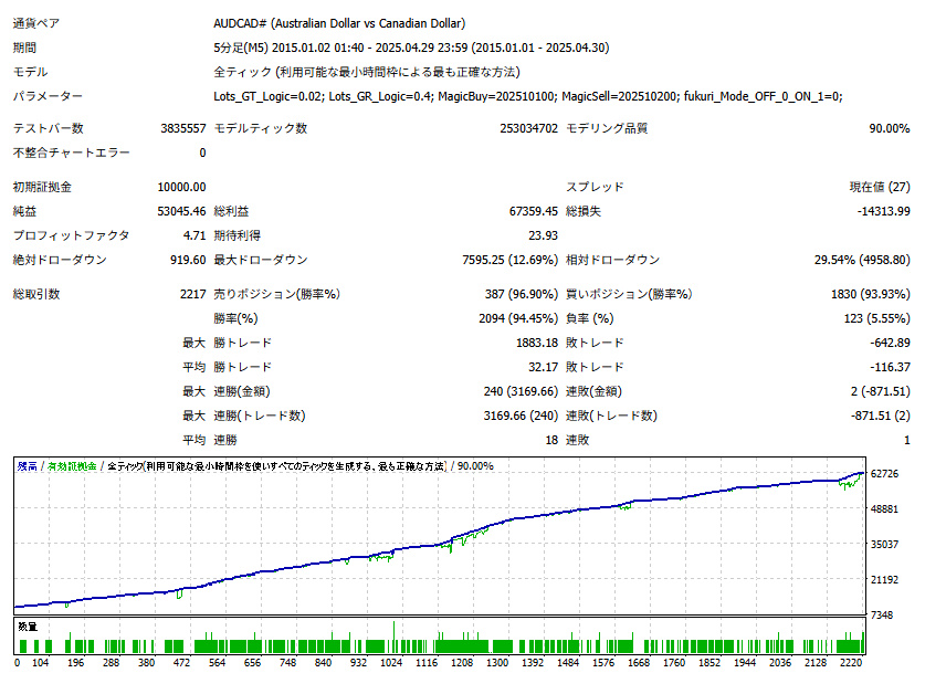 ◎過去10年4ヶ月のバックテスト状況(2015/1/1 ~ 2025/4/30)