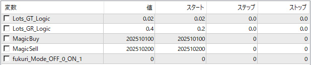 複利機能OFFでの運用 標準設定 固定ロット GT 0.02 GR 0.4