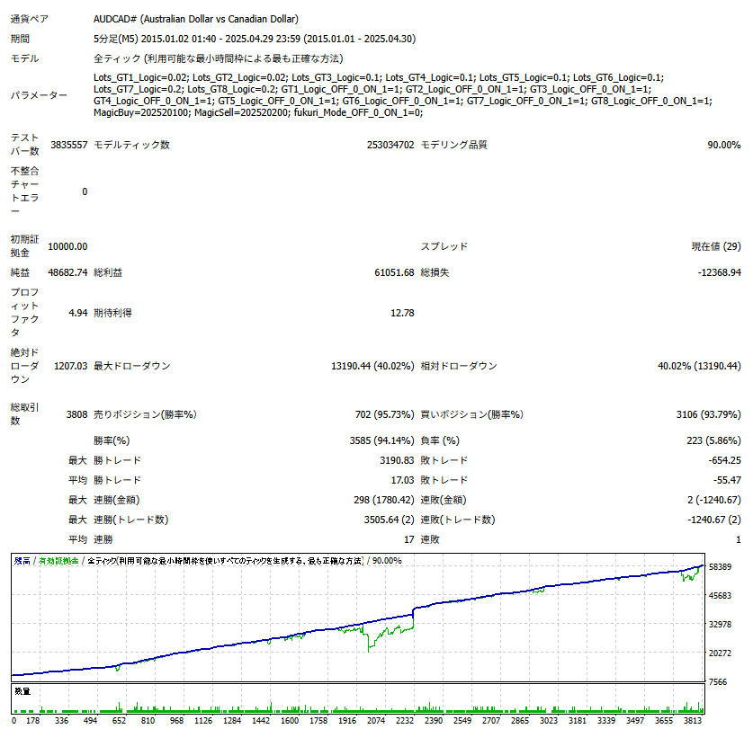 ◎過去10年4ヶ月のバックテスト状況(2015/1/1 ~ 2025/4/30)
