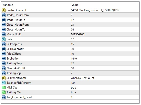 | コメント識別 | OneDay_TecCount_USDJPY(H1) |