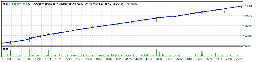 2014~2025年までの11年間のバックテスト(TDS)で最大ドローダウン約13.8%($1,588)です。
