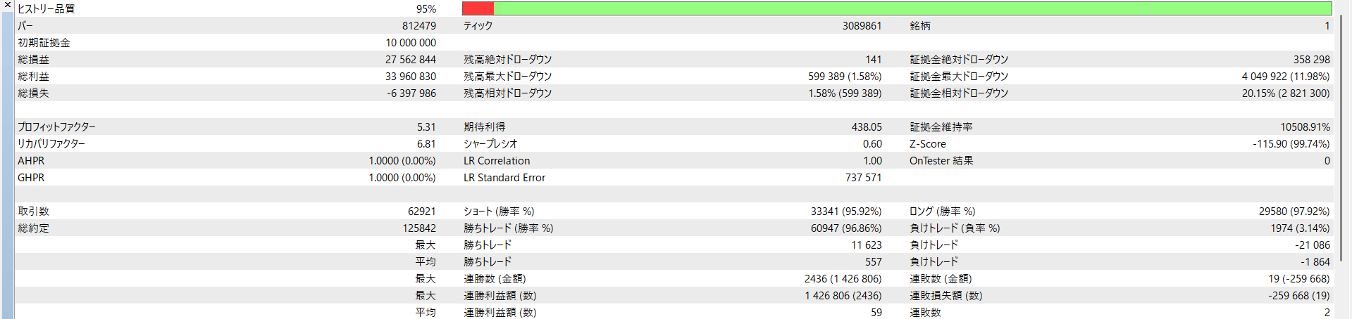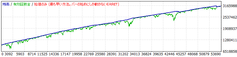 ・EA稼働中は、常に含み損を抱えた状態になります。*①について、バックテストでは取引通貨量に対して、約4倍近いドローダウンがでました。また、円レートによりドローダウンの値は変動します。バックテストや、ファンダメンタルズ等を確認しながら、適切な資金管理を行ってください。