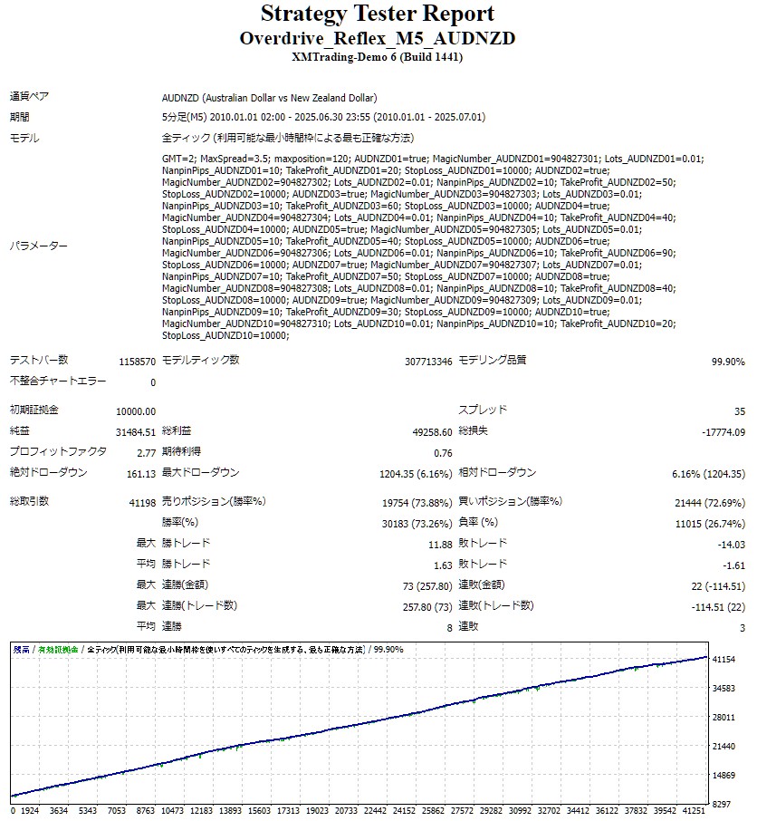 なお、本EAは、4つの通貨ペアで構成されたポートフォリオ型戦略の一部です。