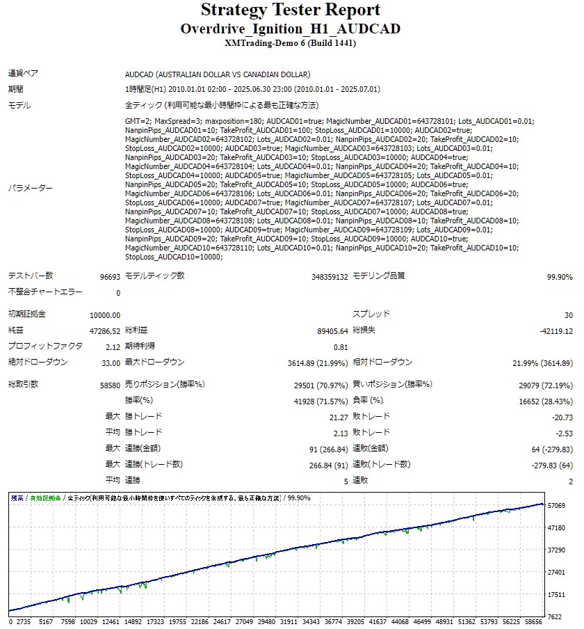 なお、本EAは、4つの通貨ペアで構成されたポートフォリオ型戦略の一部です。