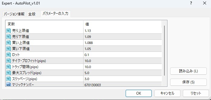 ※デフォルトはAUDNZDの設定です。通貨ペアごとに設定を変えてください。