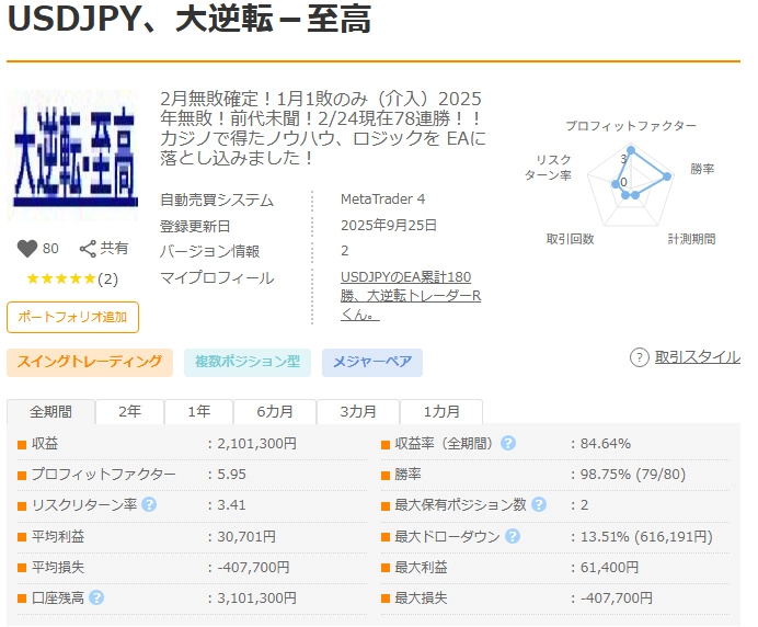 2月無敗確定!1月1敗のみ(介入)優秀な売上ランキング1位のEA