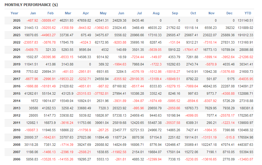 There is an absence of self-serving rule modifications, a common human tendency, such as increasing the lot size after consecutive losses in discretionary trading or, conversely, hastily securing profits with minimal gains.