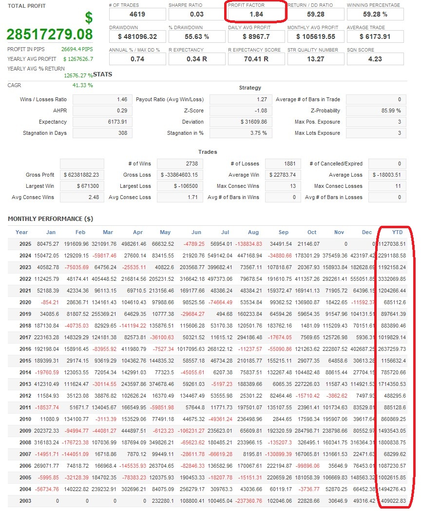 There is an absence of self-serving rule modifications, a common human tendency, such as increasing the lot size after consecutive losses in discretionary trading or, conversely, hastily securing profits with minimal gains.