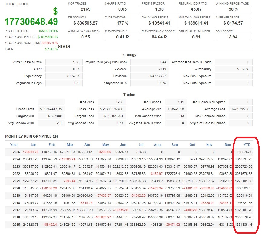 There is an absence of self-serving rule modifications, a common human tendency, such as increasing the lot size after consecutive losses in discretionary trading or, conversely, hastily securing profits with minimal gains.