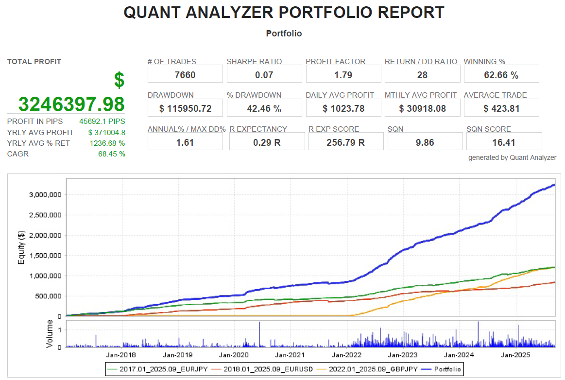 There is an absence of self-serving rule modifications, a common human tendency, such as increasing the lot size after consecutive losses in discretionary trading or, conversely, hastily securing profits with minimal gains.
