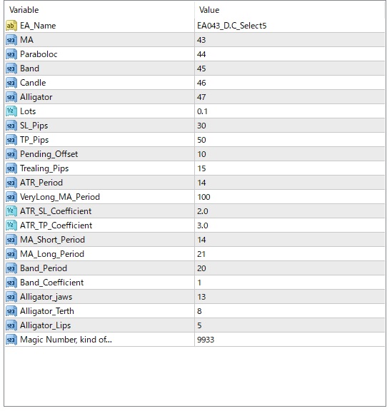 各EAのマジックナンバー(9933)