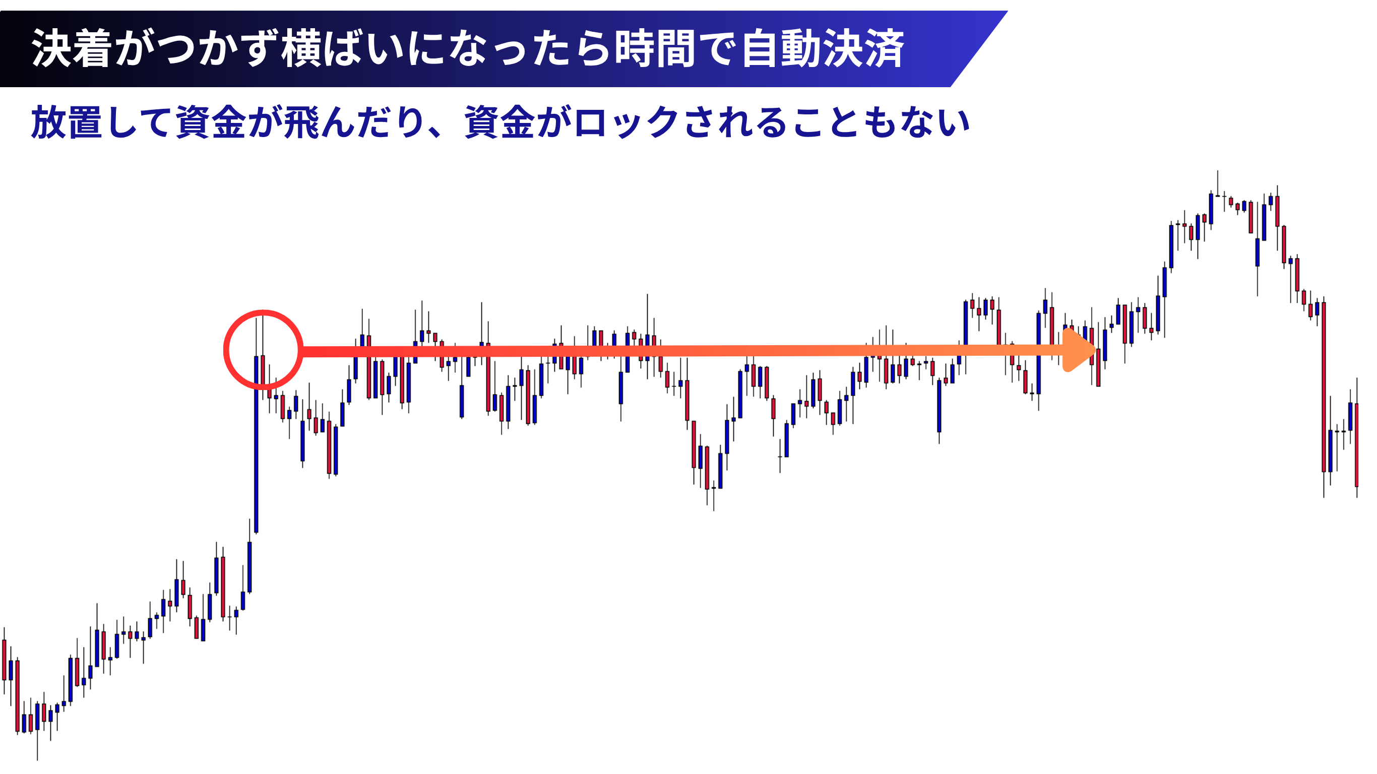 また横ばい状態が続いた際にも、170時間で自動決済が入るため資金が常にロックされてしまうこともありません。