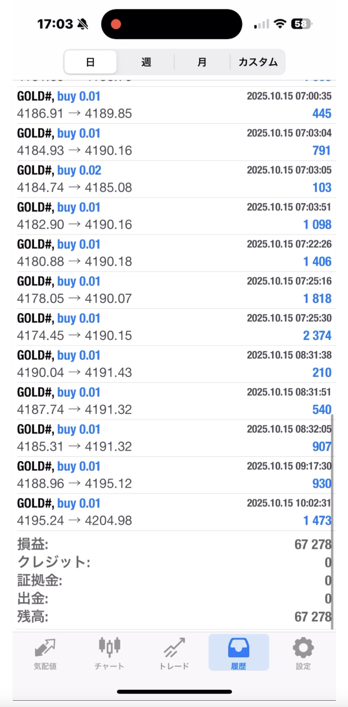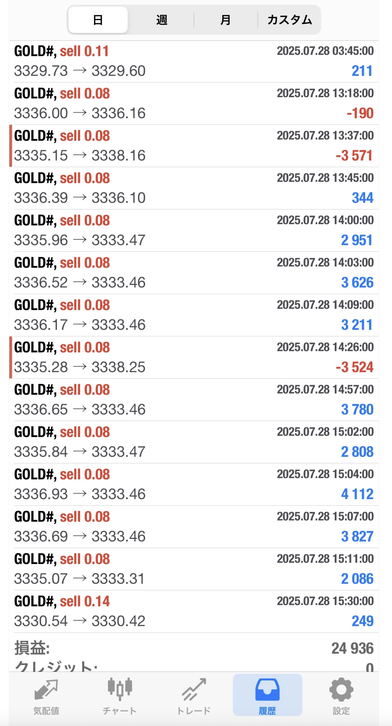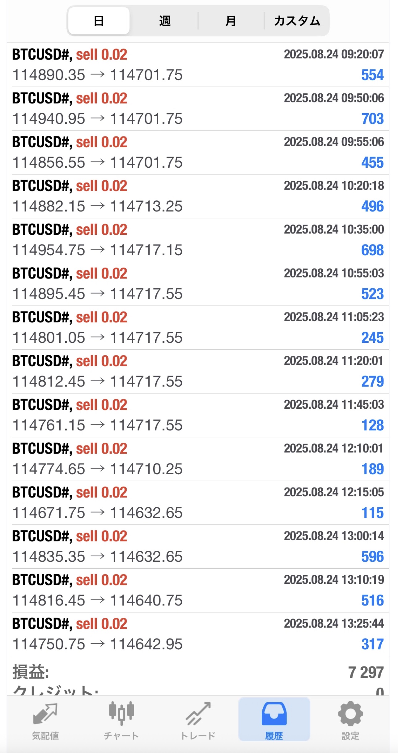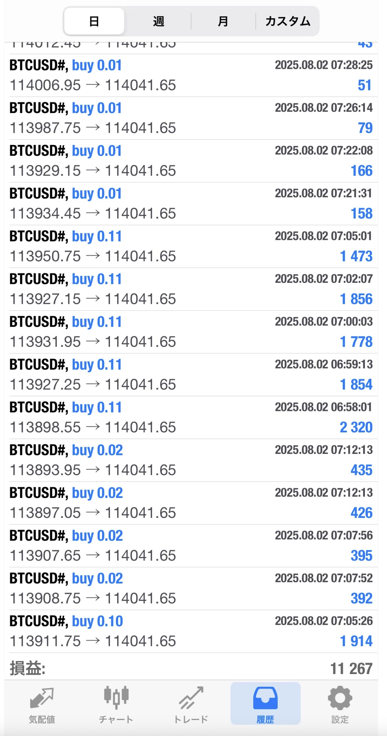 以下は1日ですが、トレード数がとても多いのでキャッシュバックなどにも有利です。