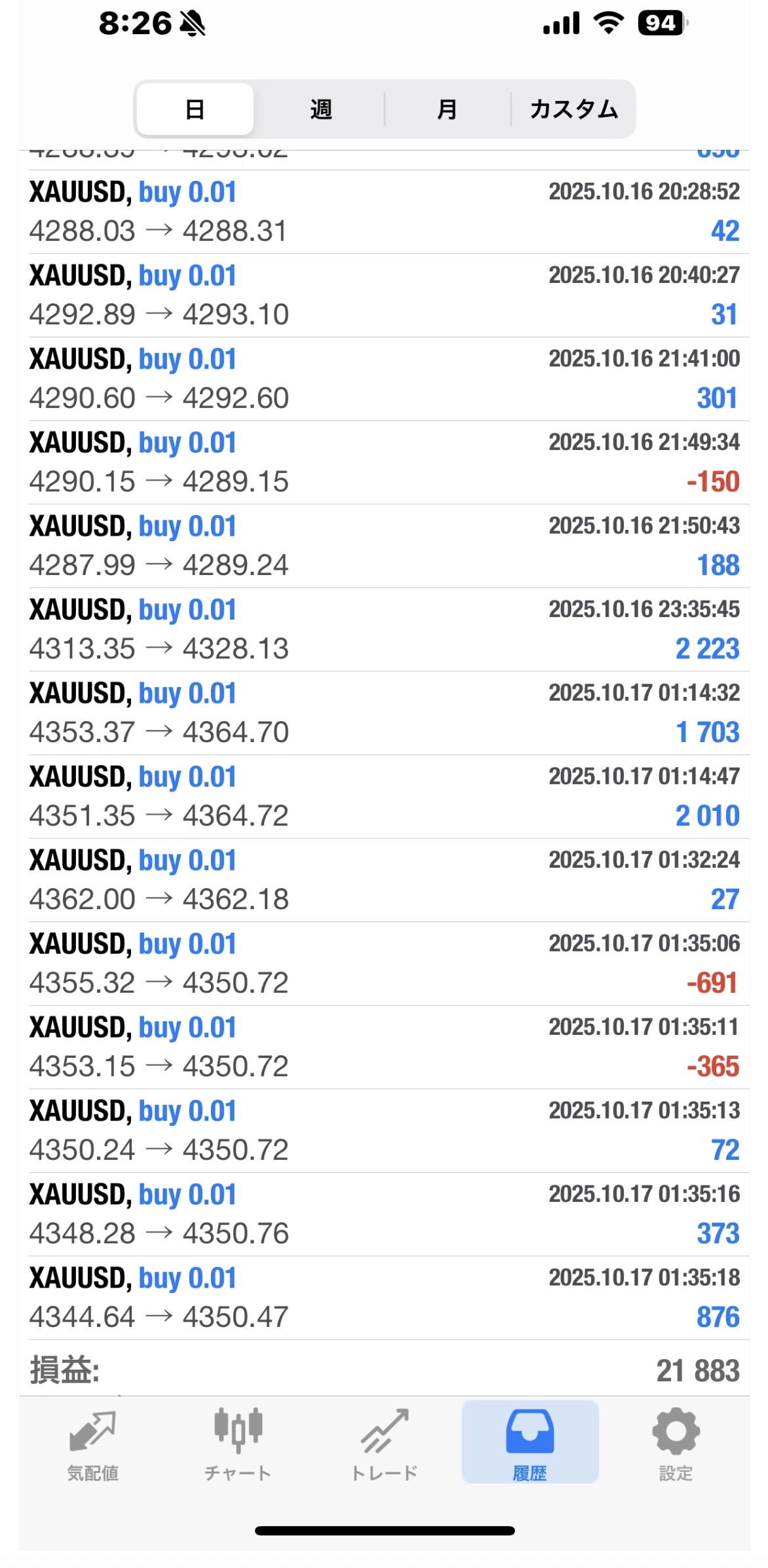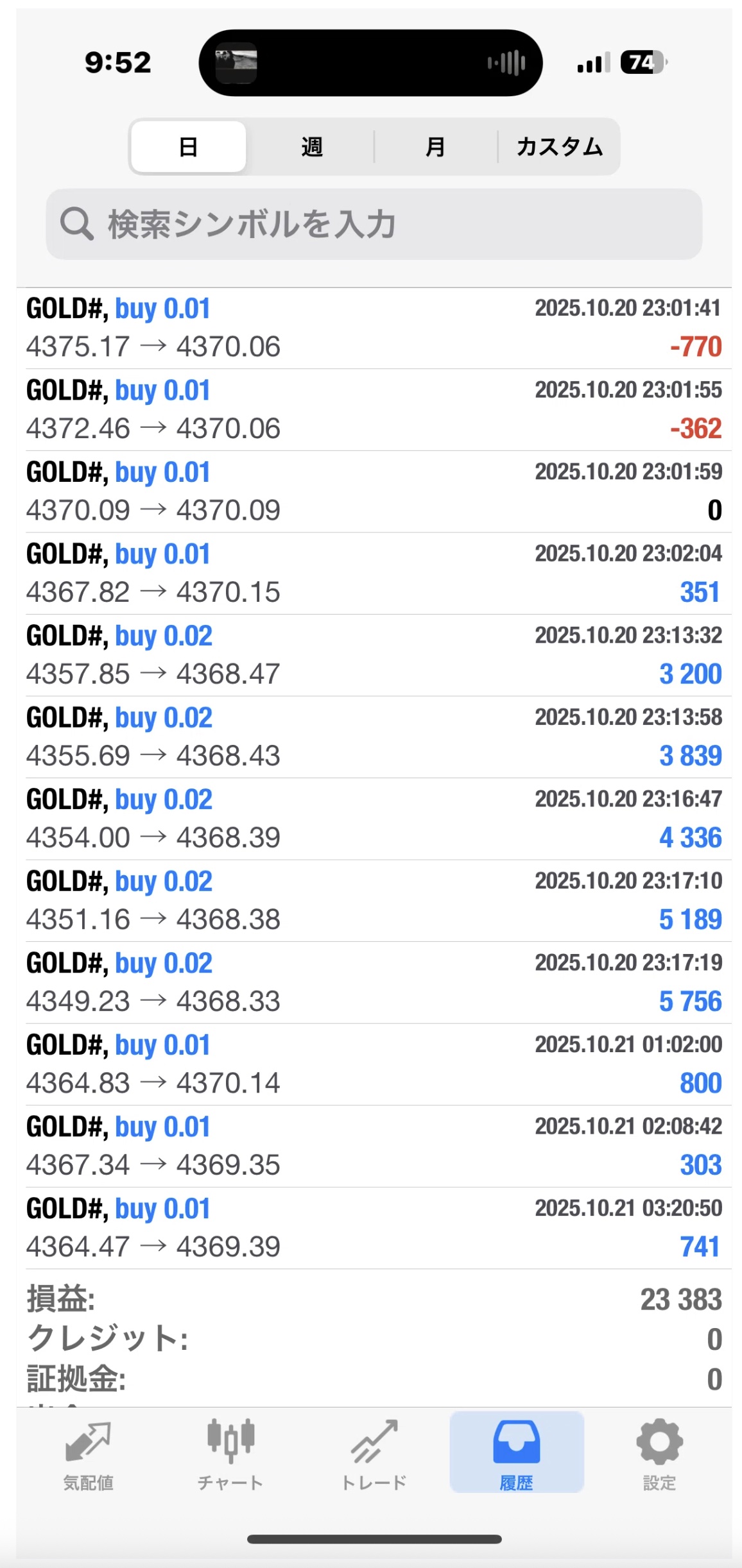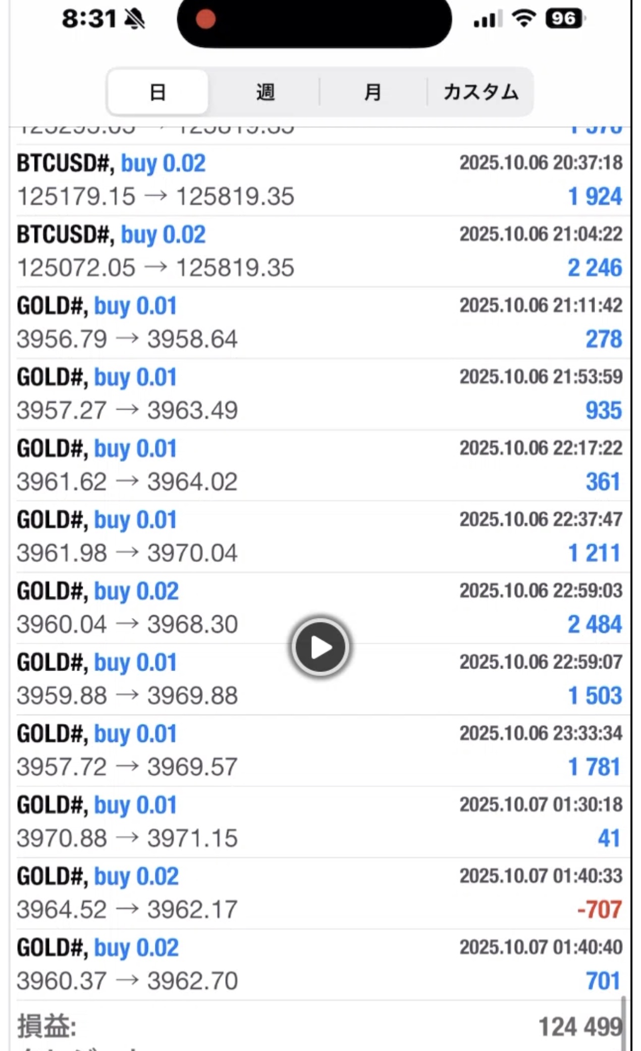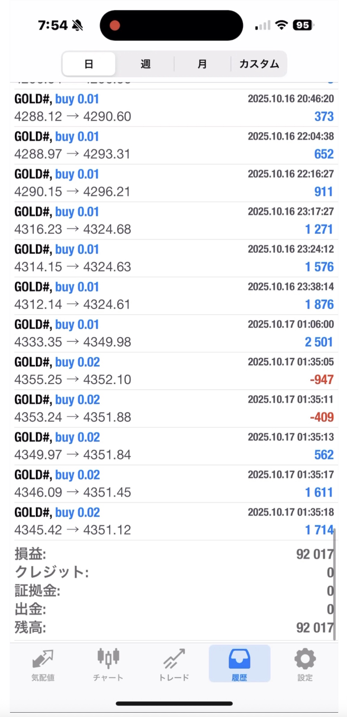 以下は1日ですが、トレード数がとても多いのでキャッシュバックなどにも有利です。