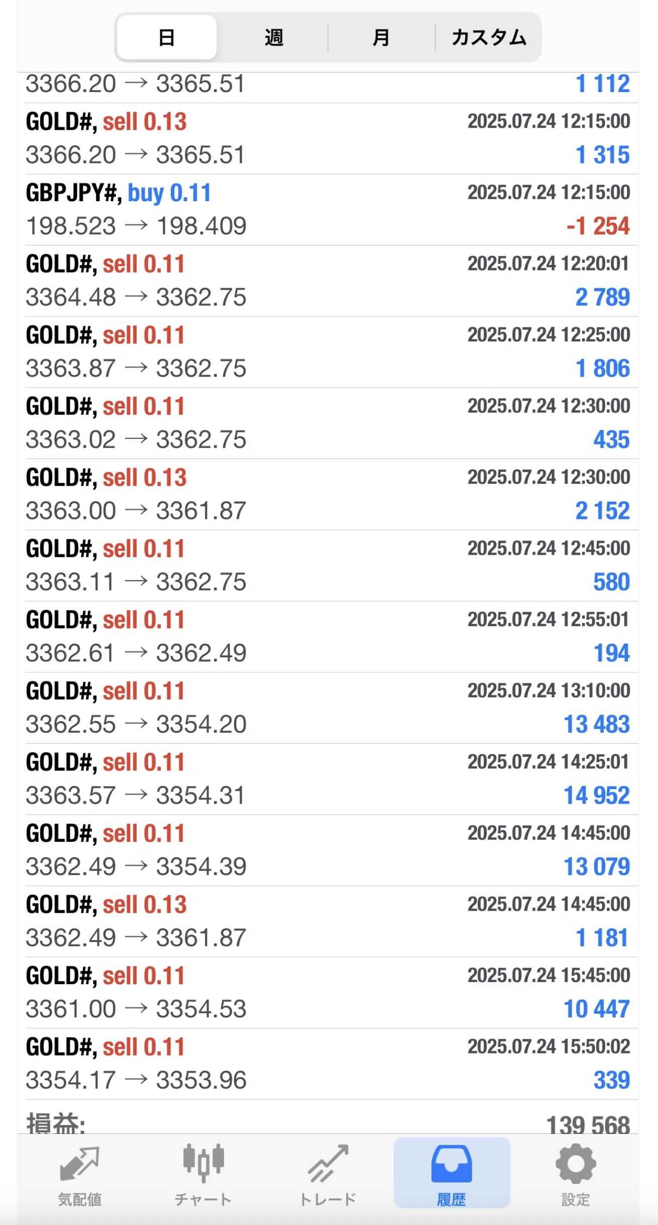 ご参考ですが、例えばゴールド 2025年8月22日から9月29日まで放置出来る条件でした。