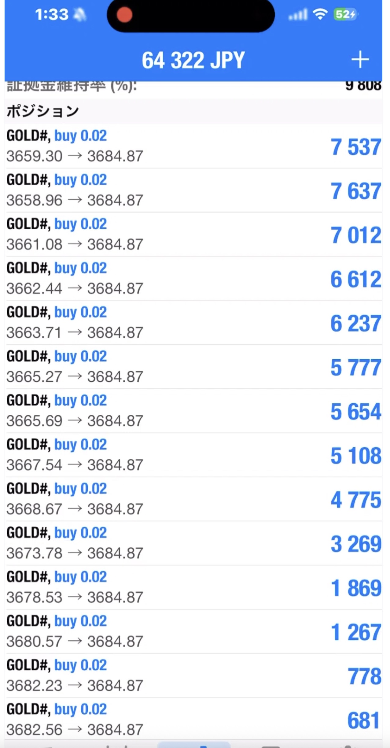 証拠金約115万円が1週間で約133万円になりました。 月利にすると60%。