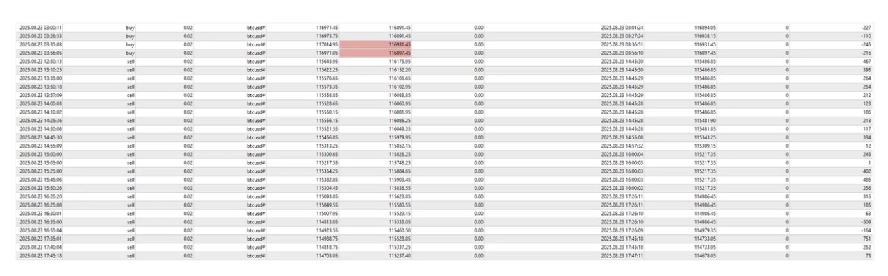 There is an absence of self-serving rule modifications, a common human tendency, such as increasing the lot size after consecutive losses in discretionary trading or, conversely, hastily securing profits with minimal gains.