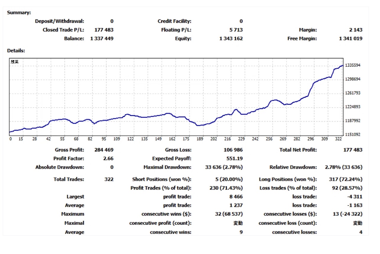 Increasing the lot size forcibly due to a high winning rate can, in rare instances, depending on the EA, lead to substantial Pips loss when a loss occurs. It is crucial to verify the SL Pips and the number of positions held before operating with an appropriate lot.