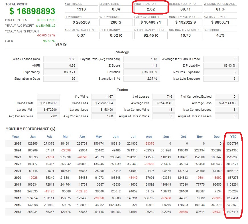 There is an absence of self-serving rule modifications, a common human tendency, such as increasing the lot size after consecutive losses in discretionary trading or, conversely, hastily securing profits with minimal gains.