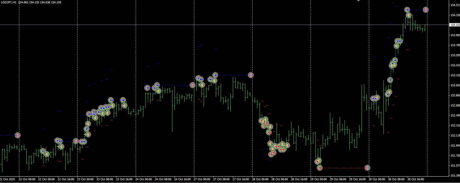 ・SL (Stop Loss): The set maximum loss pips (or specified amount, etc.) in the EA's settings