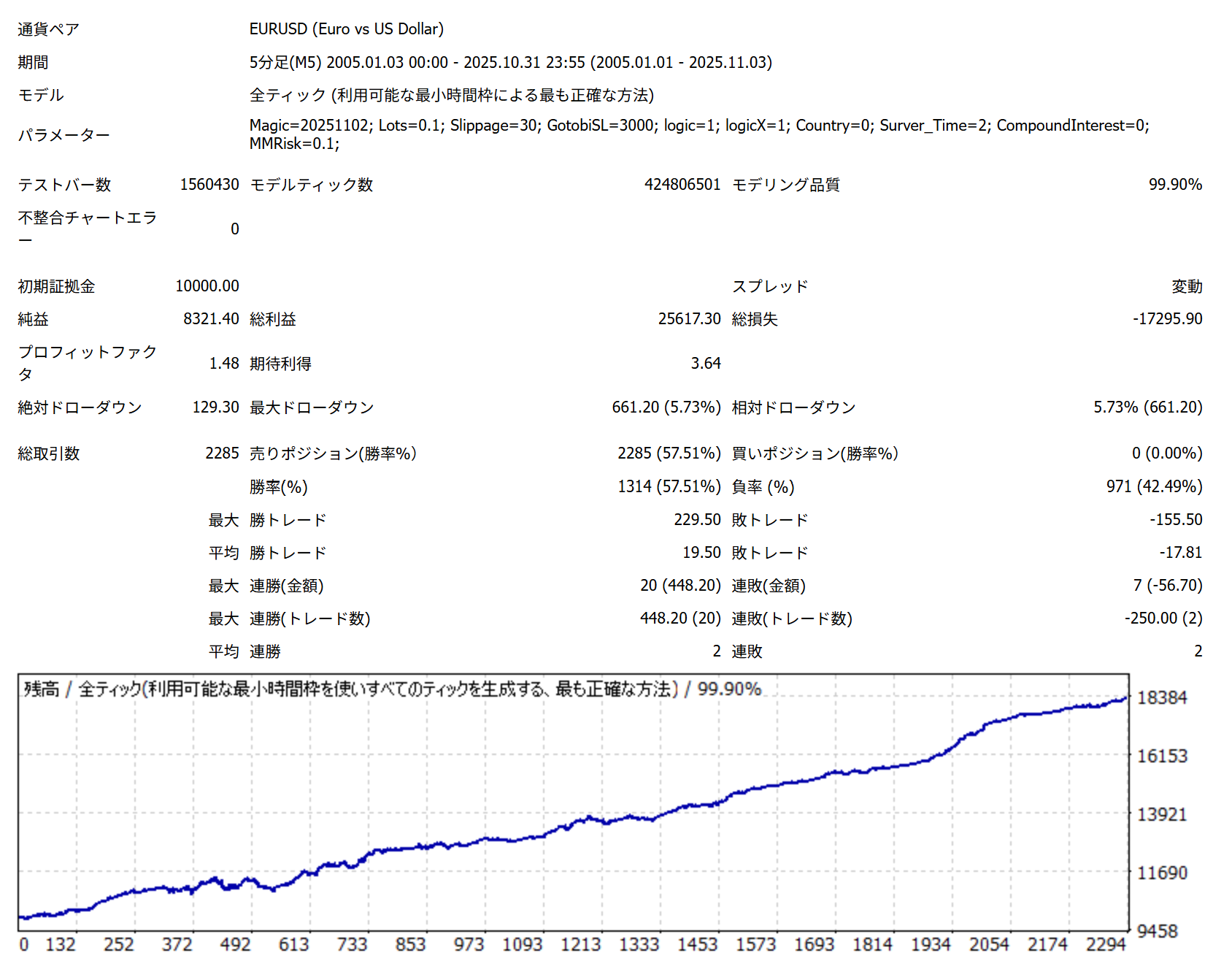 • 初心者向け(安定運用):まずは最小ロットで開始し、EAの挙動や取引スタイルに慣れることを優先します。数か月程度運用し、パフォーマンスが安定していることを確認してから、徐々にロットを引き上げることを検討してください。
