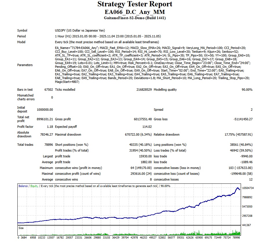 Increasing the lot size forcibly due to a high winning rate can, in rare instances, depending on the EA, lead to substantial Pips loss when a loss occurs. It is crucial to verify the SL Pips and the number of positions held before operating with an appropriate lot.