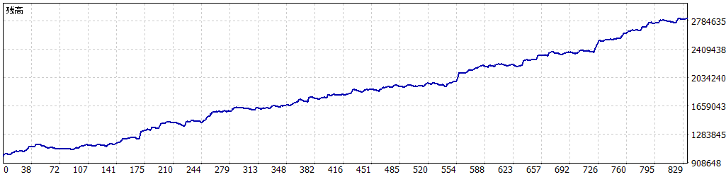 | 総利益: | 3 530 347 | 残高最大ドローダウン: | 68 539 (6%) | 証拠金最大ドローダウン: | 77 365 (5%) | |||||||